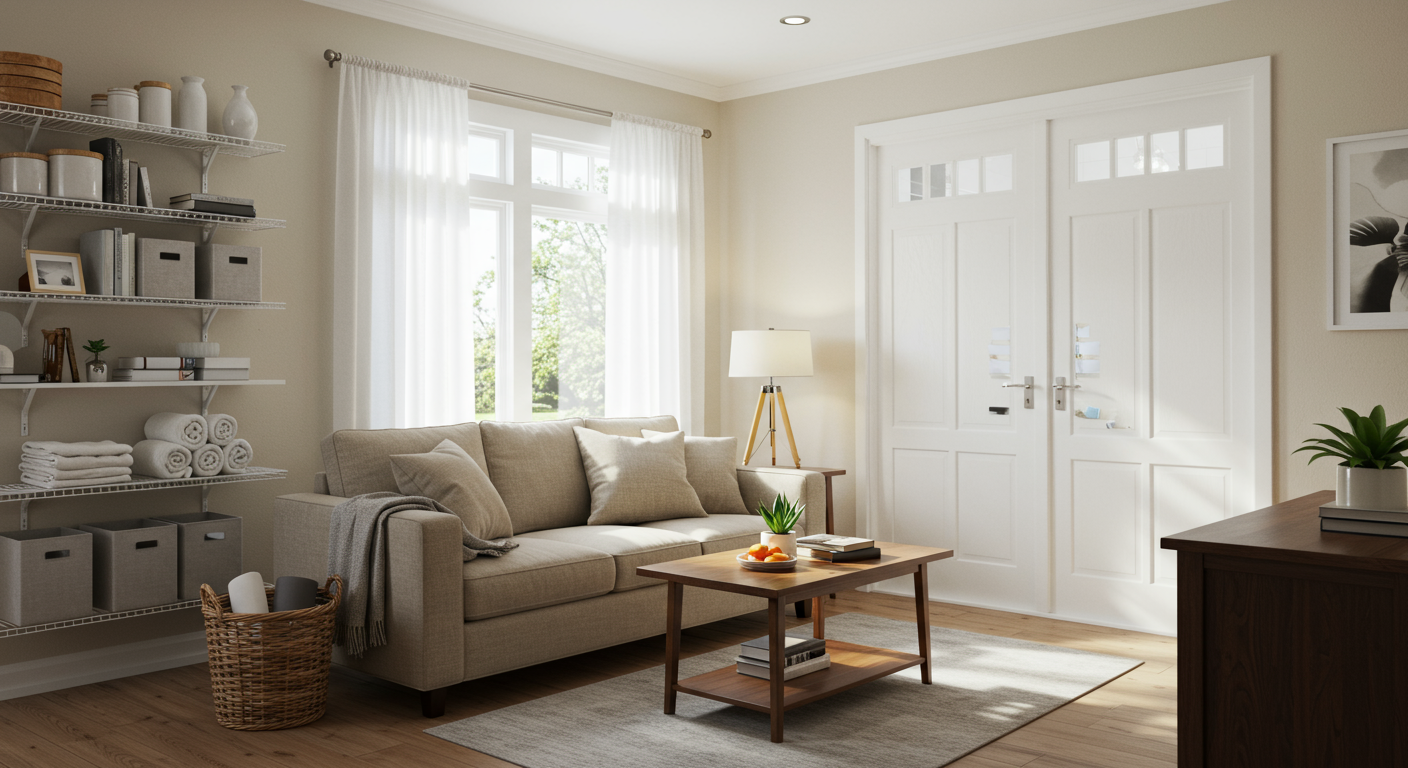 Consider storing any furniture that makes a room feel crowded; Create cozy conversation areas to help buyers see the functionality.
