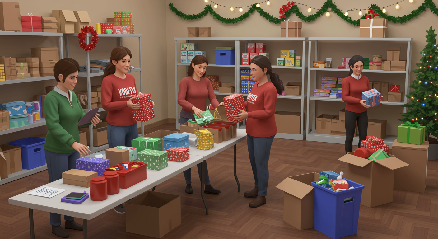 Volunteers will assist in gift wrapping and packaging of gifts for delivery at the Texas Advocacy Project office in Austin, TX.